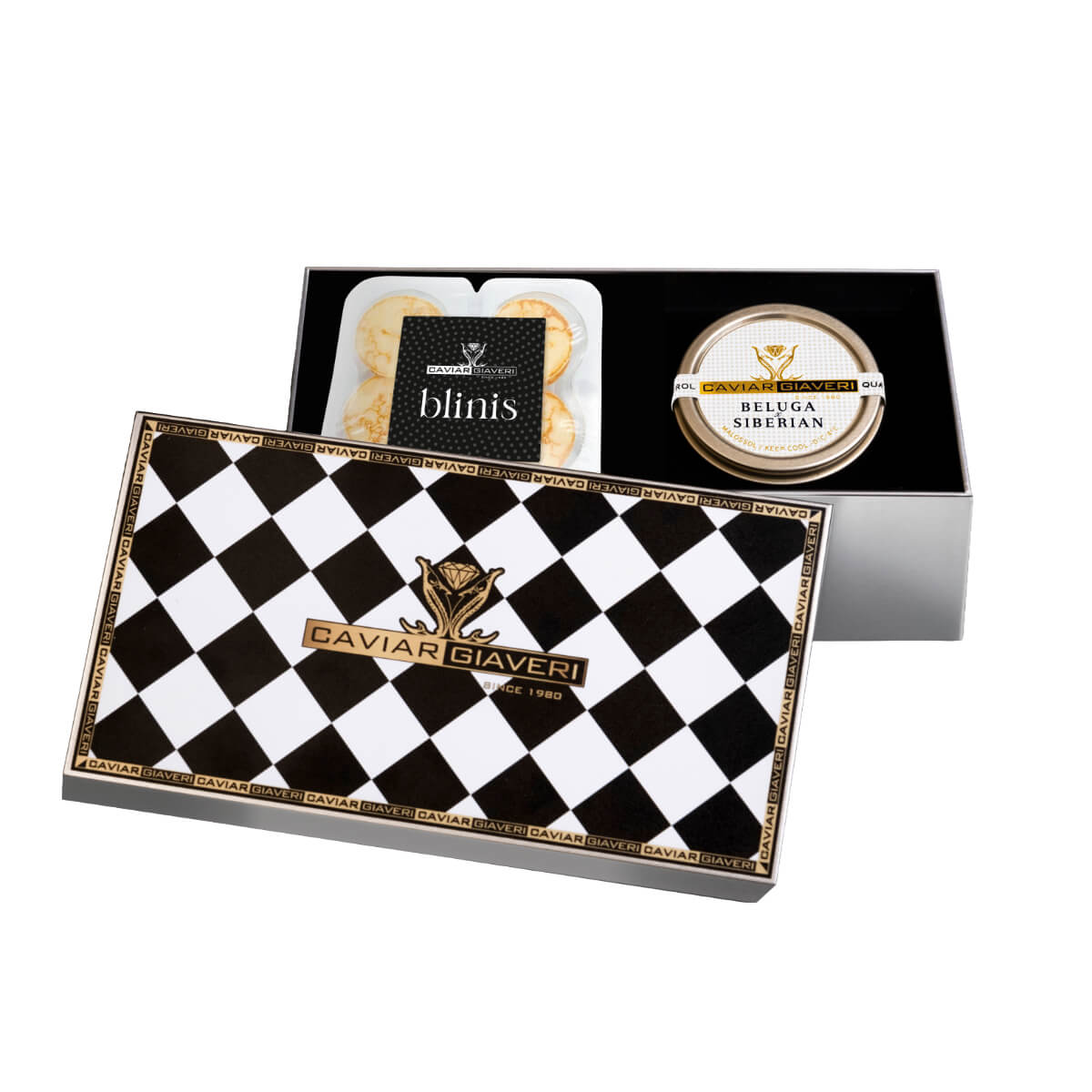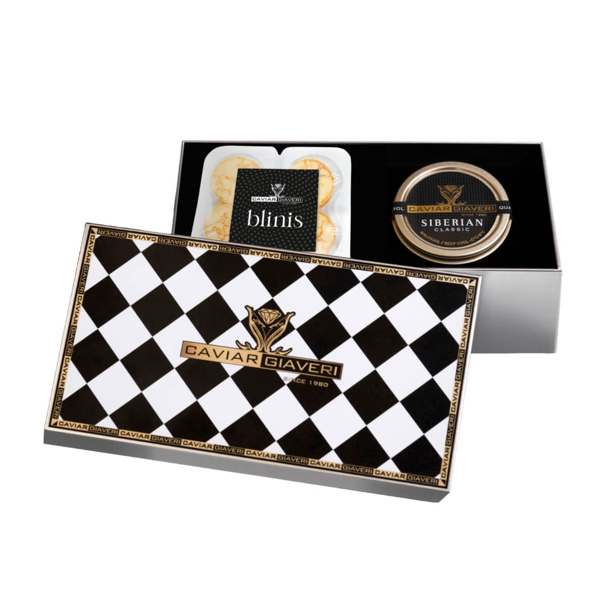Compose your exclusive gift set by selecting your preferred caviar from two of the most renowned varieties in Caviar Giaveri’s collection: Siberian Classic and Beluga Siberian.
